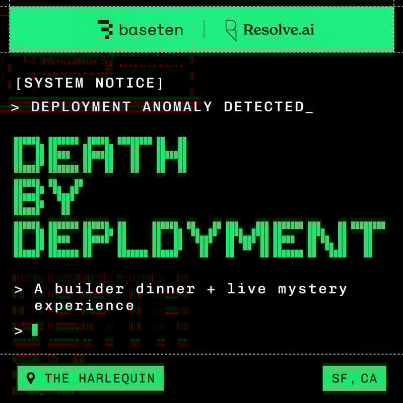 📝 Description: An immersive mystery dinner for AI engineers featuring professional actors, an open bar, and zero slide decks—hosted by Resolve AI and Baseten.